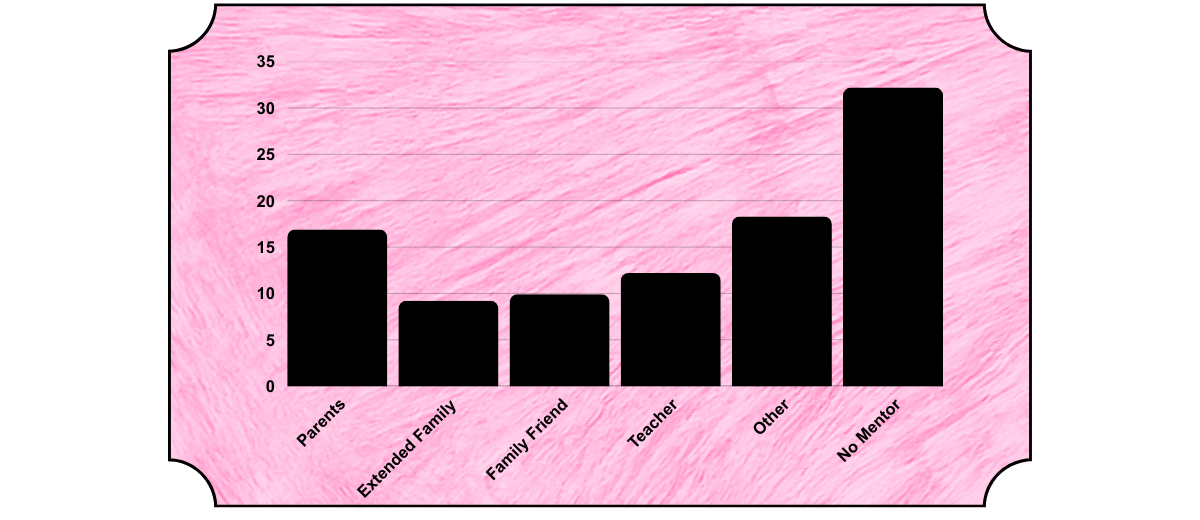 Mentorship adds another layer. Roughly two-thirds of respondents (68%) reported having a mentor of some kind, but here family prestige made the difference. Respondents who described their parents as “highly respected in their field” were roughly twice as likely to draw mentors from within their family network – parents, relatives, or family friends. Given Hamilton’s Rule, it’s likely those mentors were more invested.