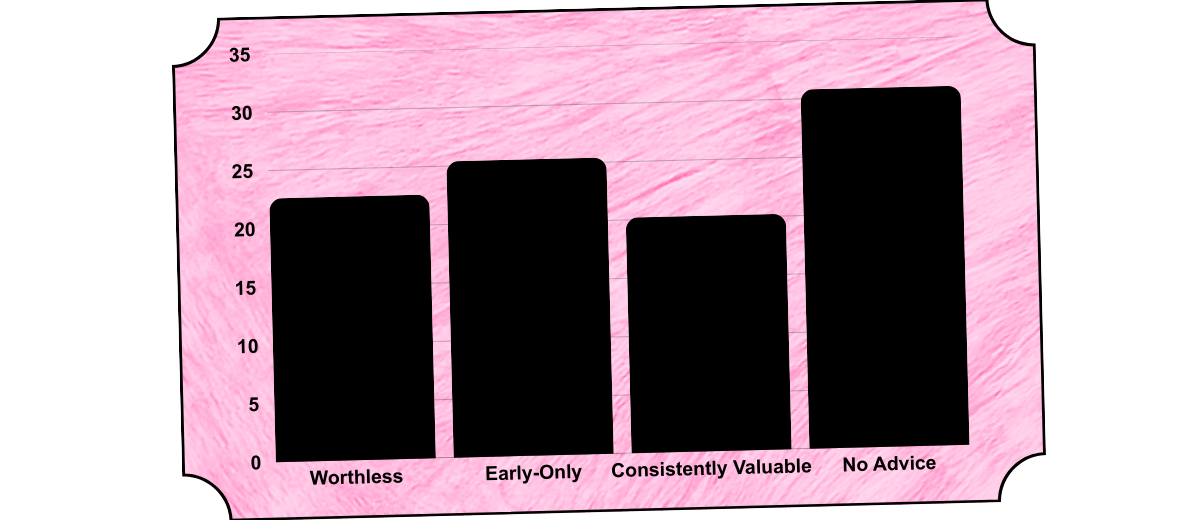 But not all favors are discrete or transactional. Advice – when it’s good – is the cheapest form of nepotism and potentially the most valuable. Fully 69% of respondents reported getting professional advice from parents. About 23% said it was worthless2, 25% said it was useful only at the start of their career, and 20% described it as consistently valuable. Unsurprisingly, those who received genuinely valuable advice were concentrated in law, medicine, and strategic corporate roles.